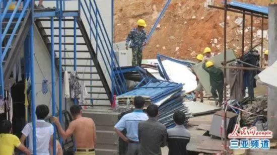 2013年5月1日的三亚市发生大暴雨,致使活动板房旁的路基护墙泥土疏松后发生坍塌,导致三亚海棠湾天房洲际度假酒店建筑工地上工人们所居住的一户活动工棚板房坍塌,事故有造成3人伤亡,1人受伤。