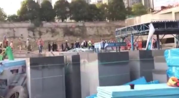 中国新闻网记者在现场看到,坍塌的面积如一个“足球场”大小,有工人正在清理现场,当地各类救援人员正在紧急救援中。