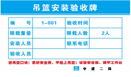 五、吊篮内应设置限载限人和安全操作规程标志牌,严禁超载使用,严禁擅自改装、加长吊篮。