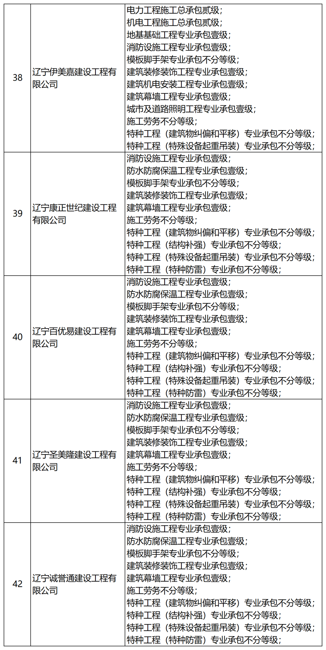 在建筑业资质核查工作中,监管部门发现辽宁浩洋建设工程有限公司等40家建筑企业通过提供虚假材料、虚假承诺等违规手段取得了资质证书。我局分别向辽宁浩洋建设工程有限公司等40家企业发出撤销建筑业企业资质行政许可告知书,在限定期限内上述40家企业未提出陈述、申辩。按照《建筑业企业资质管理规定》(住房城乡建设部第22号令)第二十九条和第三十六条规定,我局决定撤销辽宁浩洋建设工程有限公司等40家企业采取违规手段获批的建筑业企业资质。