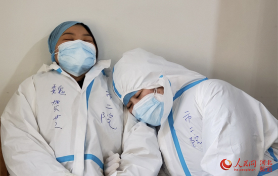 支援藁城区的石家庄市第二医院医护人员在短暂休息。 支援藁城区的石家庄市第二医院医护人员在短暂休息。 自1月2日起,石家庄市第二医院 核酸检测实验室医务人员夜以继日,进行核酸样本检验,至今检测样本近七千份。