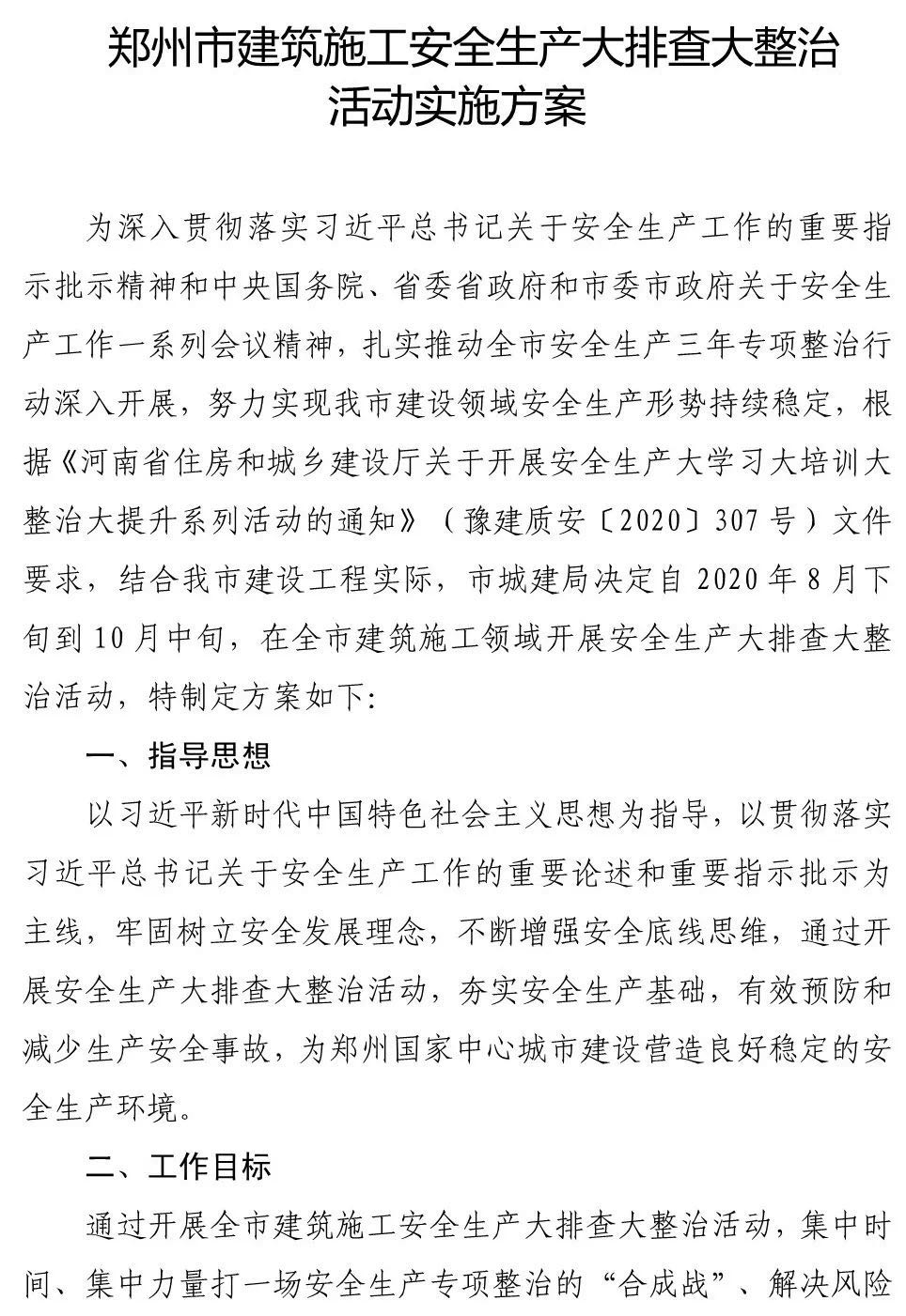 近日,郑州市城乡建设局印发《郑州市建筑施工安全生产大排查大整治活动实施方案》。